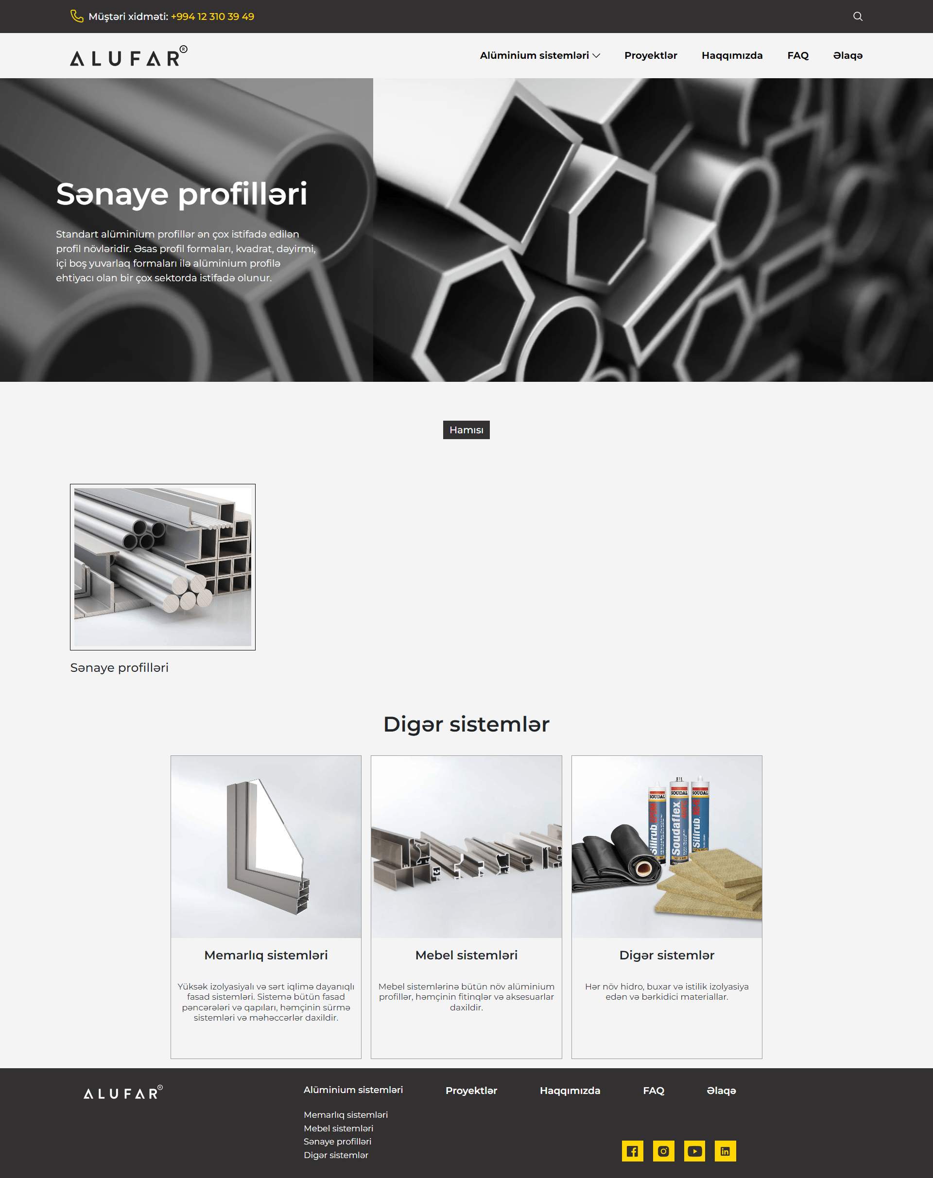 ALUFAR - Azərbaycanda alüminium sənayə və mebel profillərinin, mebel aksessuarlarının, alüminium fasad sistemlərinin satışında ixtisaslaşmış lider firmalardan biridir. Komandamız tərəfindən şirkətin mövcud vebsaytı audit olunub mövcud problemlər nəzərə alınara yeni dizayn edilmiş və tam funksional vebsayt hazırlanmışdır.
