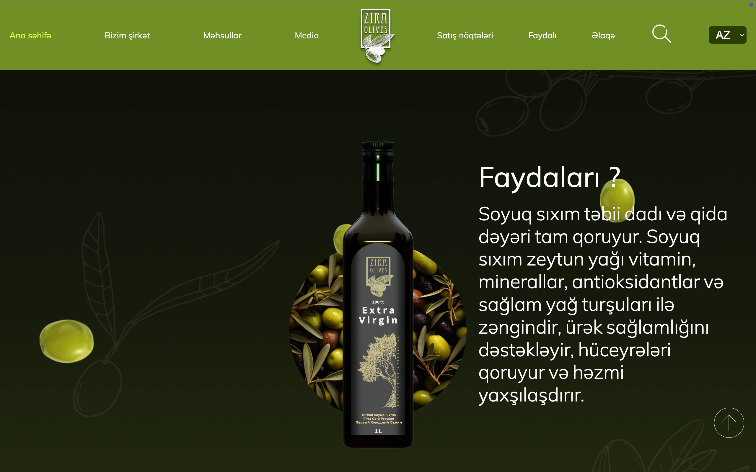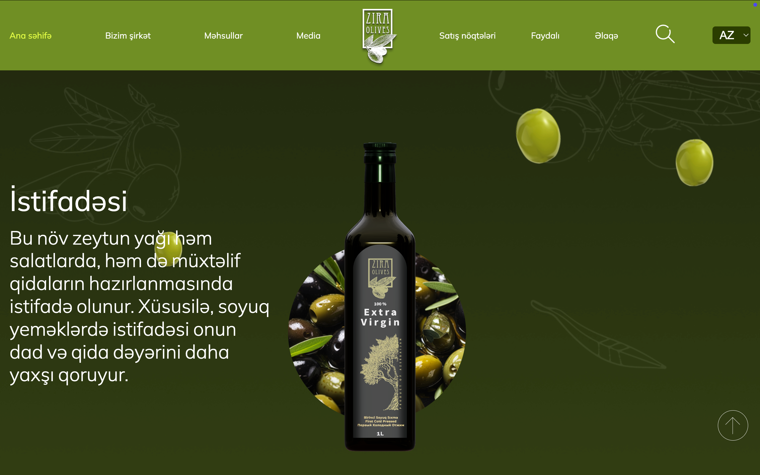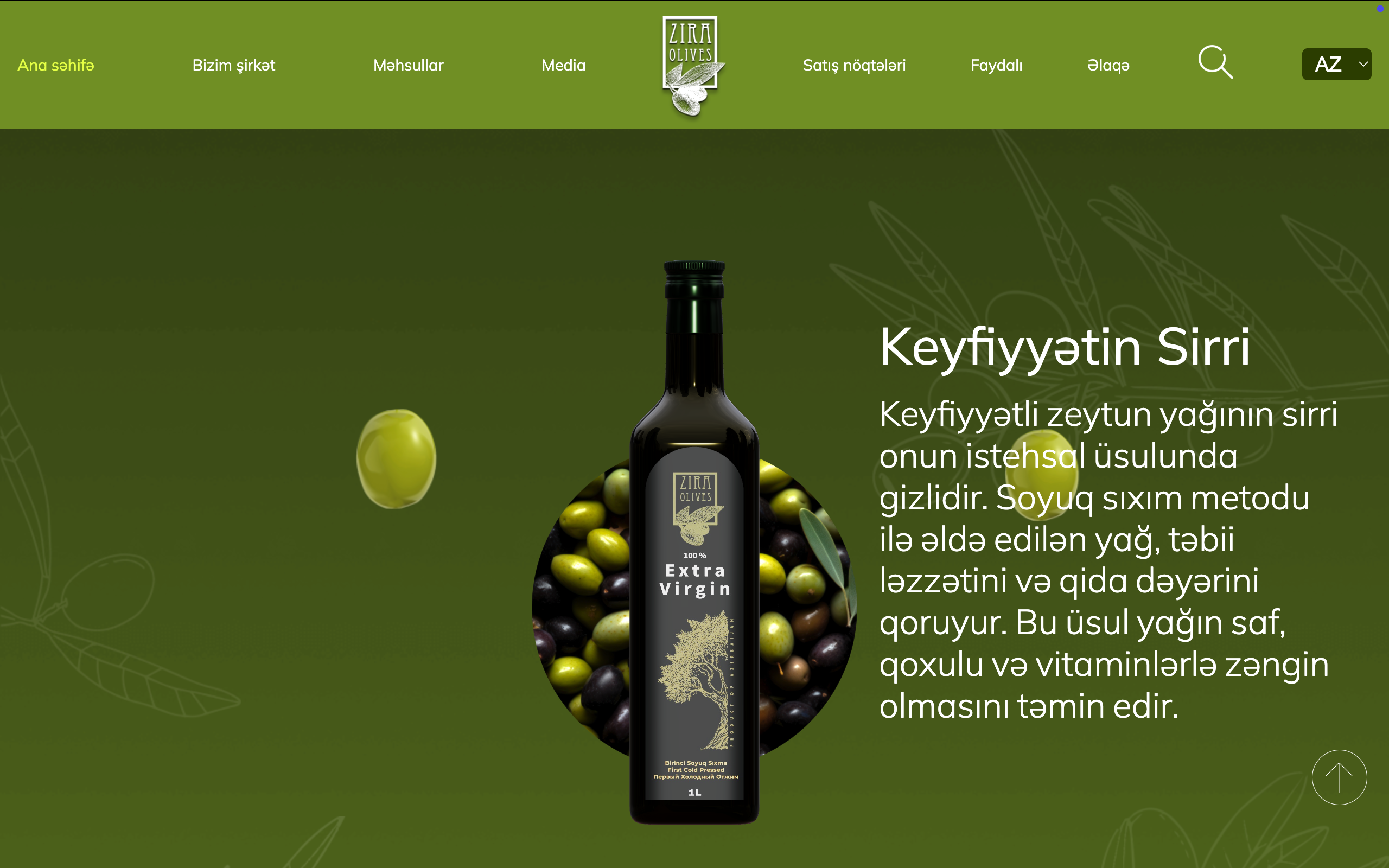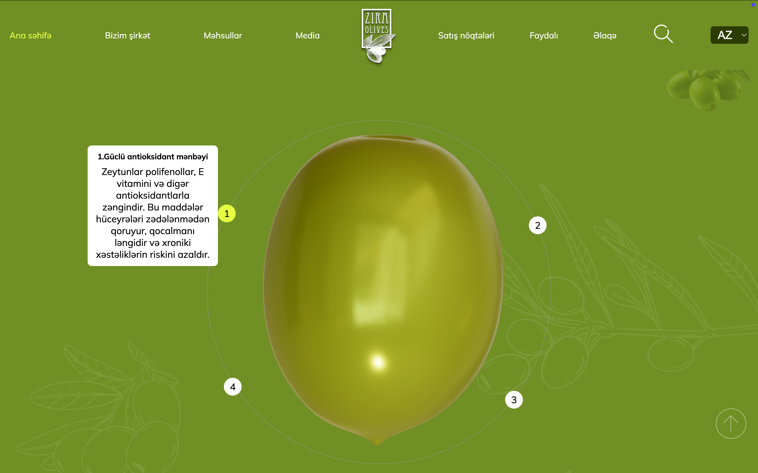 zeytun yağı və təbii zeytun məhsulları istehsalçısı üçün interaktiv 3D vebsayt hazırladıq. Müasir dizayn, həcmi vizuallaşdırma və hamar animasiyalar brendin premium xarakterini vurğulayır və istifadəçinin diqqətini cəlb edir